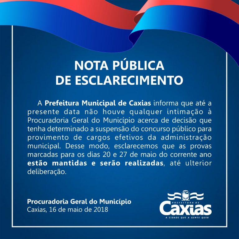 Prefeito de Caxias – Ma Emite Nota Garantindo Realização de Concurso Público para esse Domingo 20/05/2018 Categoria: Uncategorized